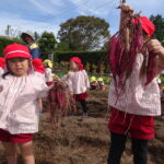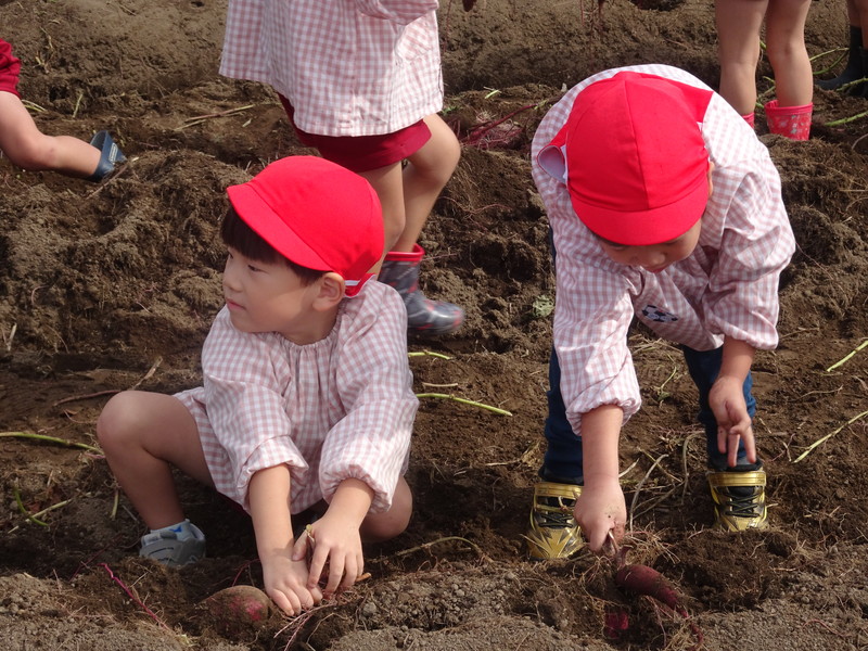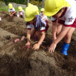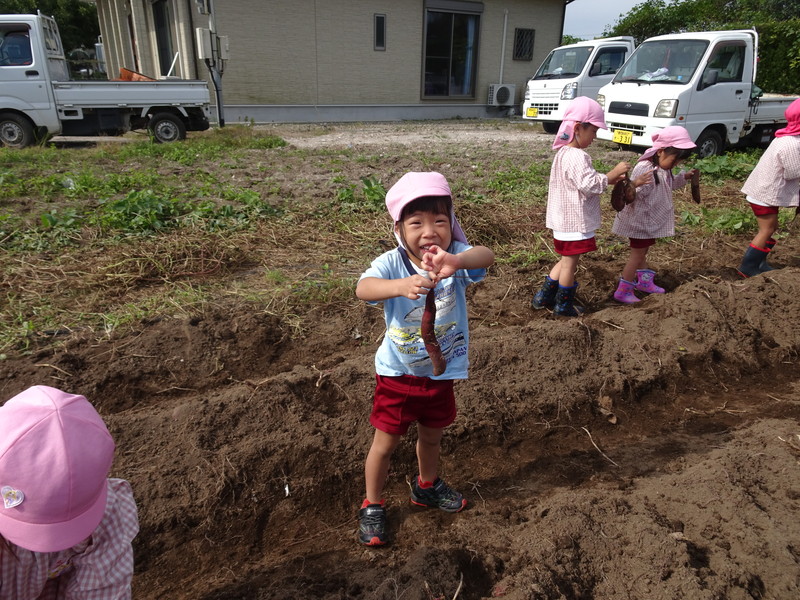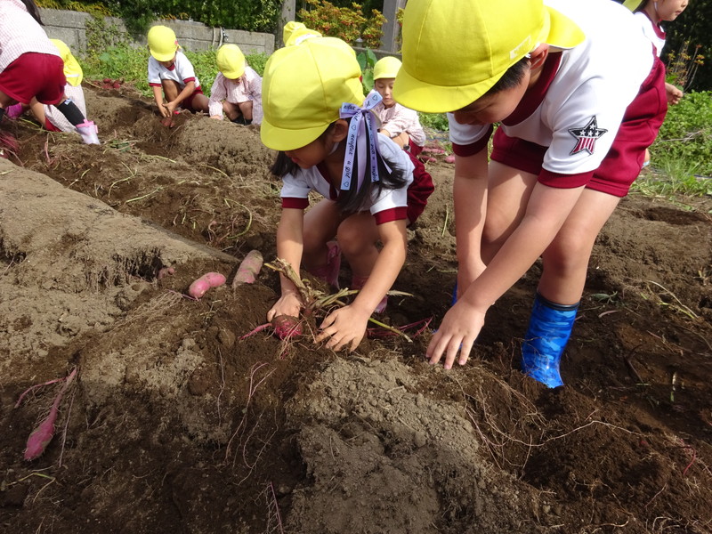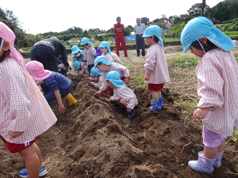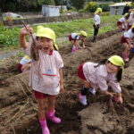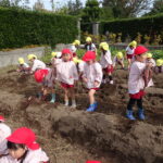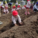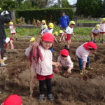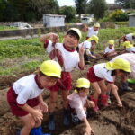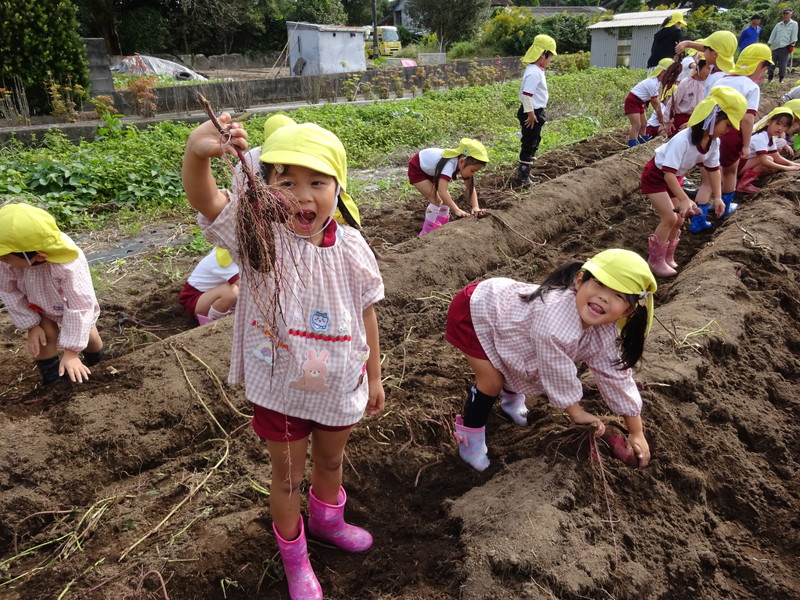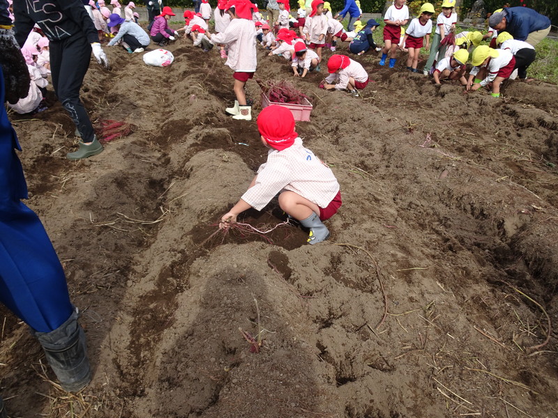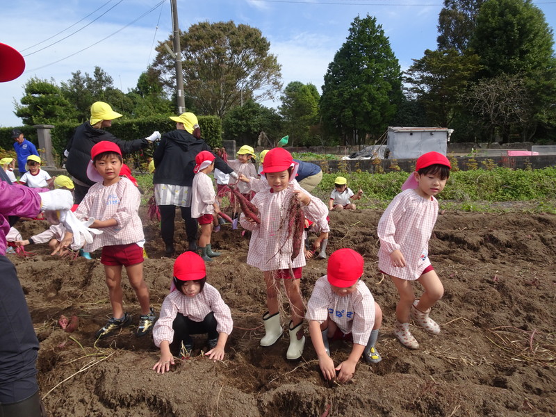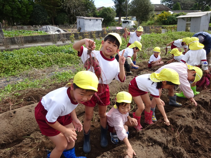 今日の笑顔 今日の笑顔 芋掘り遠足の様子♪ 2025年11月5日 10月30日(木)、石谷町にある有村さんの畑でお芋を育てていただき本日収穫に出かけてきました。おやじの会のお父さん達も朝早くからお手伝いに来てくださり「お芋ほり体験」を行いました。ツルを引っ張り「んしょ!よいしょ!」とお芋を掘り「とれたよー!」ととったお芋を高く持ち上げ大喜び!11月14日のお芋パーティーが楽しみな様子でした。