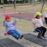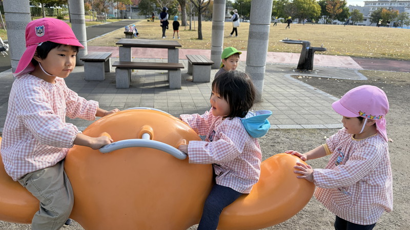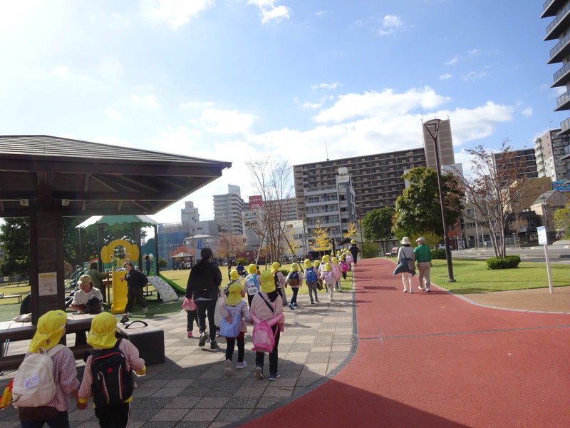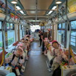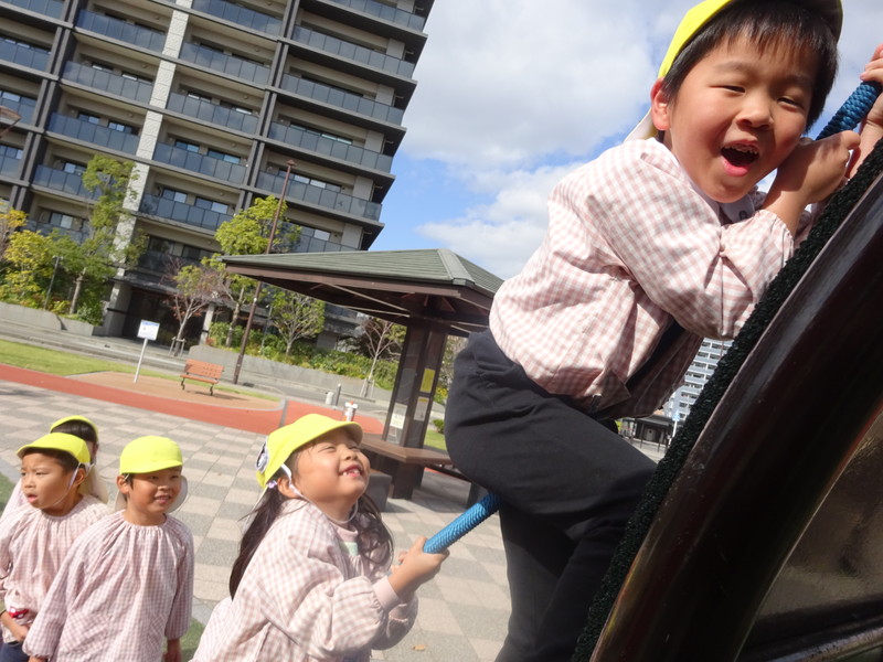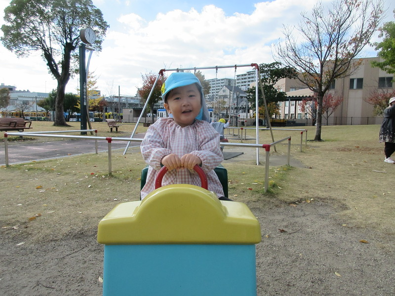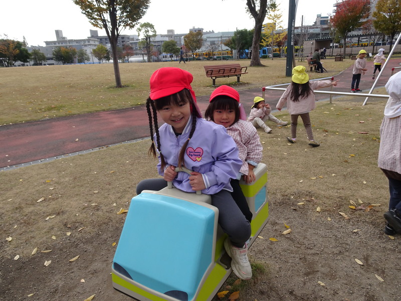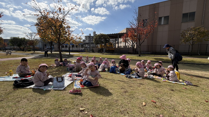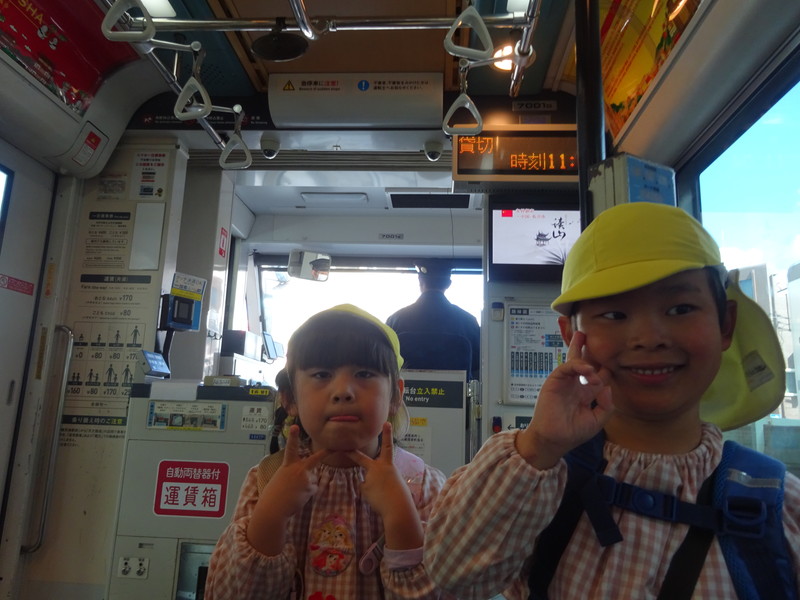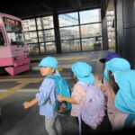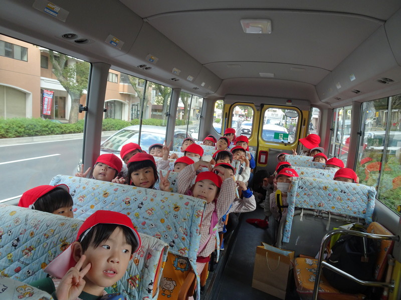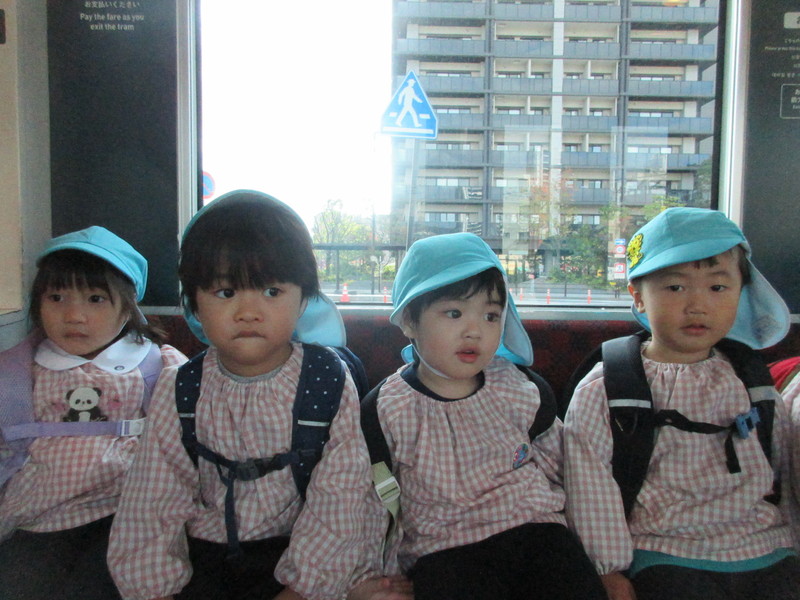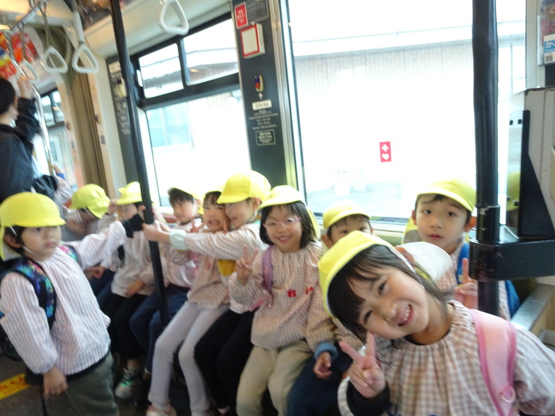 11月28日(金)、市電🚃乗車体験に出かけてきました。二組に分かれて乗車しました。貸切電車で年少々、年少組は、鹿児島駅前から神田まで乗車し、上荒田の杜公園で遊び、年中、年長組は神田から鹿児島駅まで乗車し、鹿児島駅からかんまちあまで徒歩移動し公園で遊んで園に帰ってきました。市電乗車体験では電車から見えるビル、看板を見てお友達や先生との会話が弾み、天文館が見えると「天文館、マルヤガーデン行ったことあるよ!」中央駅が見えてくると、観覧車やポケモンのイラストに大喜びの子ども達でした。市電乗車体験ができ、公共マナーもしっかりと守ることができた子ども達、市電の運転手さんにもしっかりと挨拶もできました。